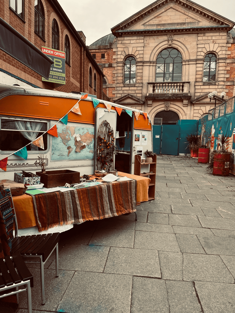 In March 2025, the caravan travelled to Derby to present a 2 day event and audio installation in the city centre, in a space adjacent to Artcore Gallery.This was a project that wove together the threads of ‘The Meet Me Caravan Tour’ (2023) and distilled this into a