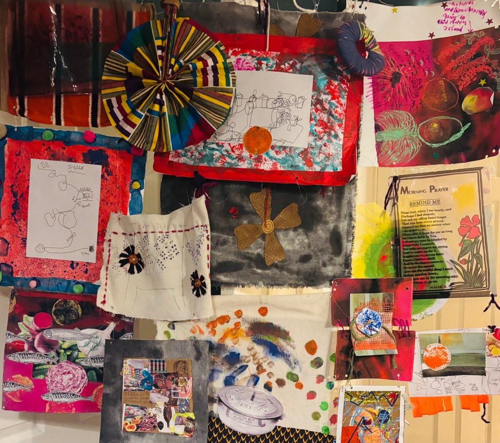 The Artcore exhibition ‘Untold Stories’ (2025) opened at the same time, and we shared the launch event. This multi-disciplinary exhibition stretched across 3 rooms, displaying artworks and outcomes from collaborative projects between artists and refugee groups within Derby, sharing many similar themes, approaches and methods to my work with the Deptford Elders. Ideas explored included home, belonging, movement, objects and ritual. It was a privilege to work with Artcore and meet their incredible creative community.